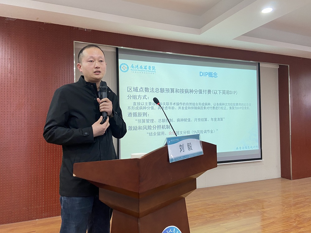 會(huì)議中,病案室劉毅主任針對(duì)DIP政策,通過對(duì)DIP實(shí)際付費(fèi)操作流程及重要環(huán)節(jié)的解讀,圍繞DIP付費(fèi)政策下如何規(guī)范書寫病案首頁(yè)、提高醫(yī)保結(jié)算單質(zhì)量,對(duì)病種、分值、權(quán)重系數(shù)、決額預(yù)算、結(jié)算、監(jiān)管等內(nèi)容進(jìn)行深入細(xì)致的講解。