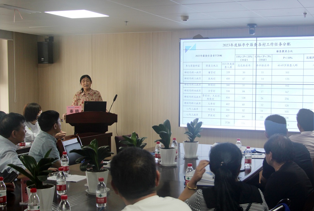 南石醫(yī)院卒中辦公室主任秦鷗介紹了本年度篩查及干預(yù)項(xiàng)目的基本情況、任務(wù)量和具體實(shí)施方案,并對(duì)職責(zé)進(jìn)行分工、具體到工作量表填寫(xiě)、數(shù)據(jù)的統(tǒng)一采集等方面做出了詳細(xì)介紹,對(duì)去年卒中篩查工作的不足之處,給予講解、說(shuō)明,保證今年不再犯類似的錯(cuò)誤,保證項(xiàng)目工作可以準(zhǔn)時(shí)保質(zhì)保量完成。