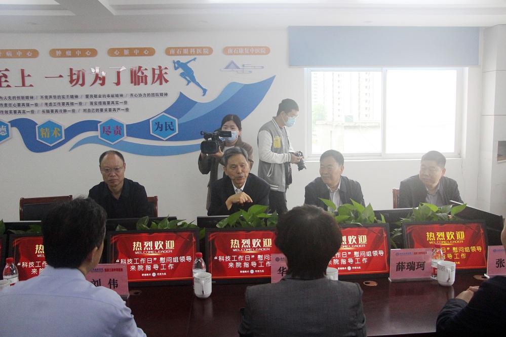 南石醫(yī)院黨委書記、院長趙俊祥,副院長石軍峰,執(zhí)行院長李獻哲,醫(yī)療副院長彭兆龍等院領(lǐng)導(dǎo)在第四會議室接待了慰問組成員。