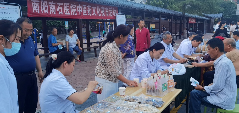 為進(jìn)一步營造信中醫(yī)、學(xué)中醫(yī)、用中醫(yī)、愛中醫(yī)的社會氛圍。南陽市2023年中醫(yī)藥文化夜市在南陽市民服務(wù)中心啟動。6月7日晚上7點(diǎn),南石醫(yī)院副院長彭兆龍,中醫(yī)科、中西醫(yī)結(jié)合科、中藥師、醫(yī)務(wù)部、藥學(xué)部,南石康復(fù)中醫(yī)院等近20名中醫(yī)相關(guān)醫(yī)務(wù)工作者準(zhǔn)時來到南陽市漢畫館門前,持續(xù)開展“中醫(yī)藥文化夜市”義診活動。當(dāng)晚,南陽市中醫(yī)藥發(fā)展局副局長楊運(yùn)清、科教文化科科長冀丹丹現(xiàn)場指導(dǎo)工作。