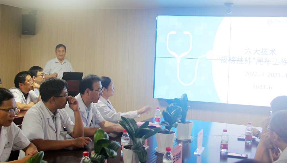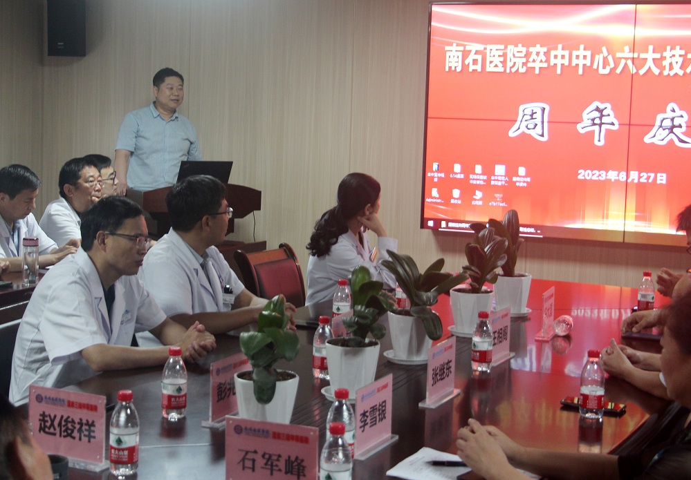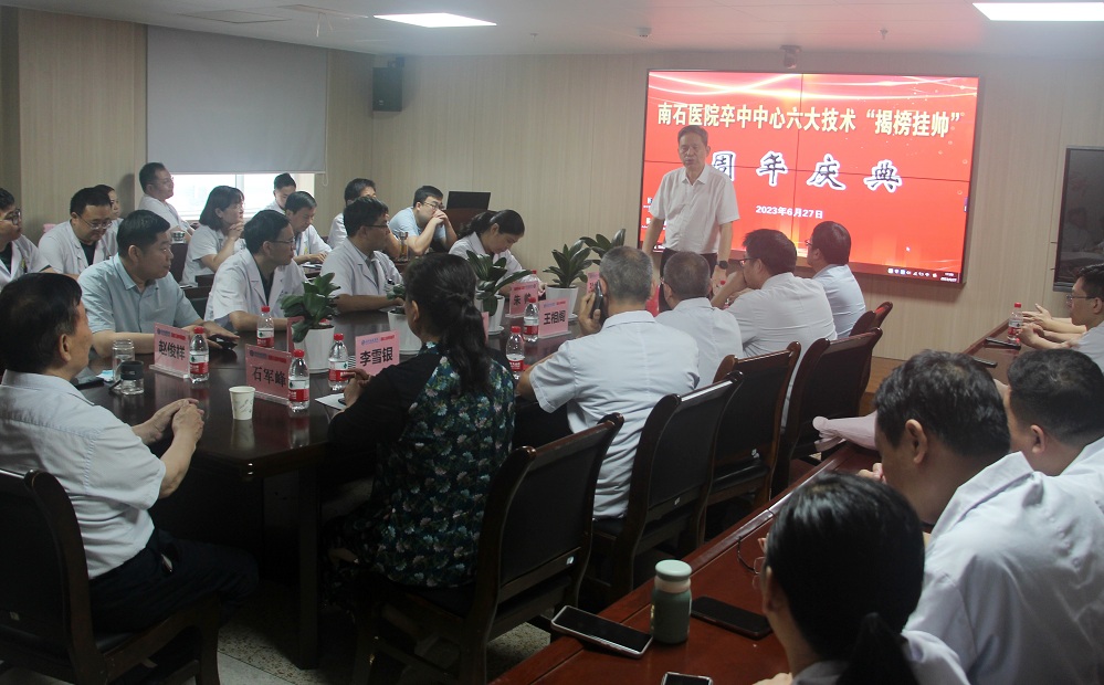 一花獨(dú)放不是春,百花齊放春滿園。6月28日,南石醫(yī)院腦卒中中心六大核心技術(shù)“揭榜掛帥”周年慶典在南石醫(yī)院腦血管病診療中心會議室舉行。南石醫(yī)院黨委書記院長趙俊祥,黨委委員副院長石軍峰、彭兆龍,醫(yī)務(wù)科主任李雪銀及卒中中心主任,副主任,護(hù)士長全體參會。對一年來卒中六點核心技術(shù)(靜脈溶栓技術(shù)、血管內(nèi)介入再通技術(shù)、頸動脈支架置入、頸動脈內(nèi)膜剝脫、動脈瘤夾閉、動脈瘤填塞)開展情況進(jìn)行總結(jié)交流。