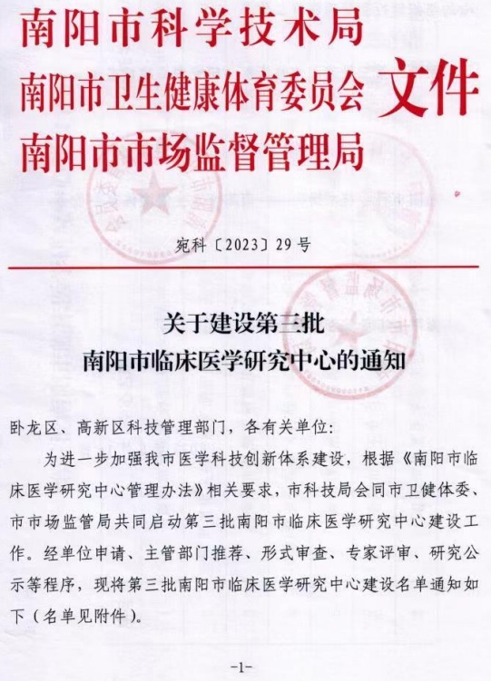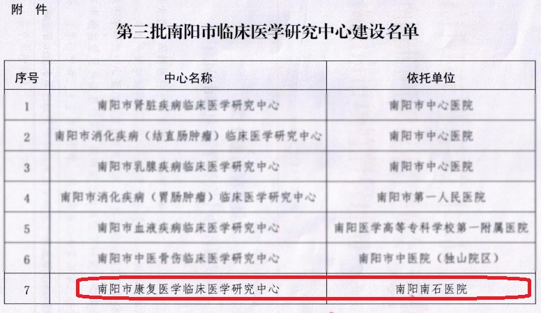連雨不知春去,一晴方覺夏深。按照《南陽市臨床醫(yī)學(xué)研究中心管理辦法》相關(guān)要求,經(jīng)市科技局會同市衛(wèi)健委、市市場監(jiān)管局共同批準,市科技局下發(fā)了《關(guān)于建設(shè)第三批南陽市臨床醫(yī)學(xué)研究中心的通知》,我院獲批建設(shè)康復(fù)醫(yī)學(xué)臨床醫(yī)學(xué)研究中心,是我院近年來獲批的第二個臨床醫(yī)院研究中心。臨床醫(yī)學(xué)研究中心旨在加強臨床研究平臺建設(shè),打造協(xié)同創(chuàng)新網(wǎng)絡(luò),研究制定臨床研究標準規(guī)范,開展高水平科技攻關(guān)和科技合作,培養(yǎng)領(lǐng)軍人才和團隊,整體提升我院相關(guān)領(lǐng)域疾病診療技術(shù)水平和服務(wù)能力。